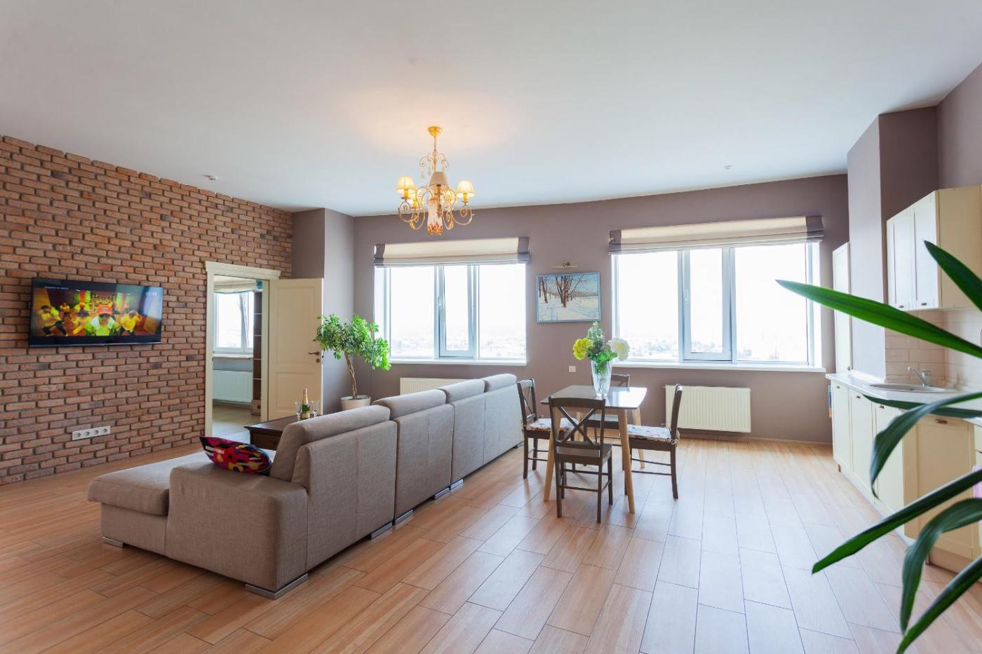 Stylish views Apartments in the parasol. Parus.Obolonskaya embankment is situated in the Obolonskyj district of Kyiv, 7.1 km from Maidan Nezalezhnosti Metro Station, 7.7 km from St. Michaels Golden-Domed Monastery and 8.6 km from Saint Sophia Cathedral. This apartment provides free private parking, a lift and free WiFi. The property is non-smoking and is located 6.9 km from St. Cyrils Monastery.