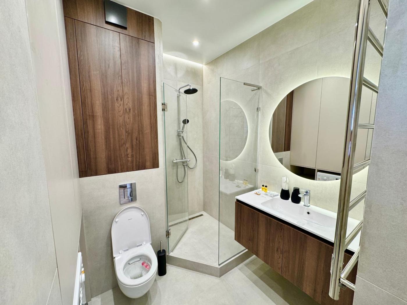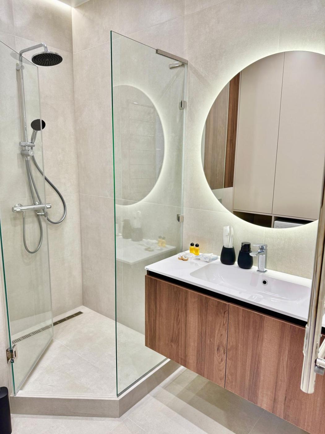 One-Bedroom Apartment. The air-conditioned apartment has 1 bedroom and 1 bathroom with a shower and a hairdryer. Meals can be prepared in the kitchen, which is fitted with a stovetop, a refrigerator, kitchenware and an oven. Boasting a balcony with sea views, this apartment also offers a washing machine and a flat-screen TV. The unit has 1 bed.